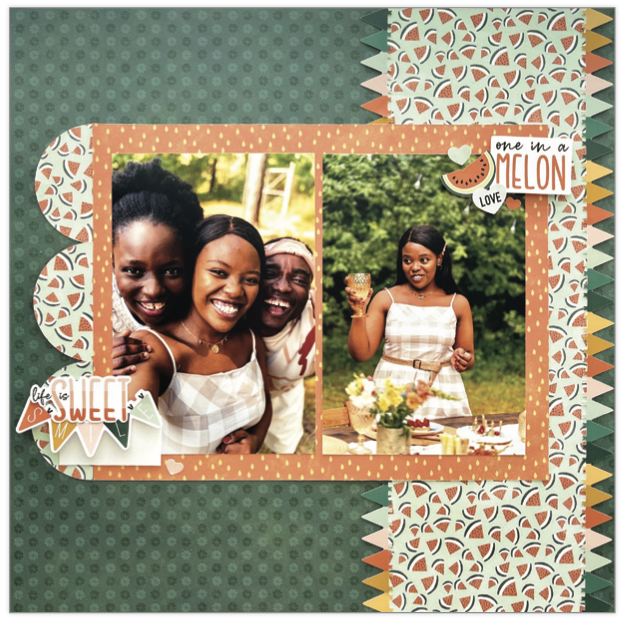 Thank you for letting me be a part of Scrappin’ for a Cure! I hope you will have fun with this Fruity Delights collection. Here are a few ideas to get you started. Click on each image to download the PDF file with instructions for how to duplicate the layout.